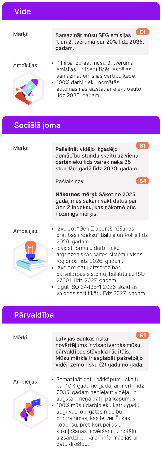 Mūsu būtiskās ilgtspējas jomas, kurās varam īstenot tiešas darbības, ir: